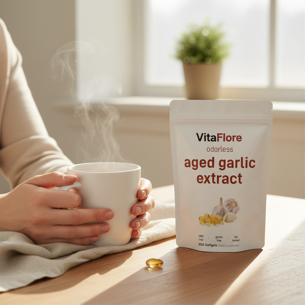 VitaFlore's aged garlic extract delivers clinically studied cardiovascular support in one simple daily softgel — helping women 40+ take control of their cholesterol, blood pressure, and long-term heart health.